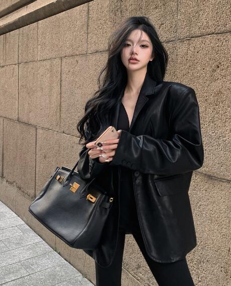 フェイクレザーブラウスシャツトップスカ レディースファッション 早い者勝ち ブラック ブラウン