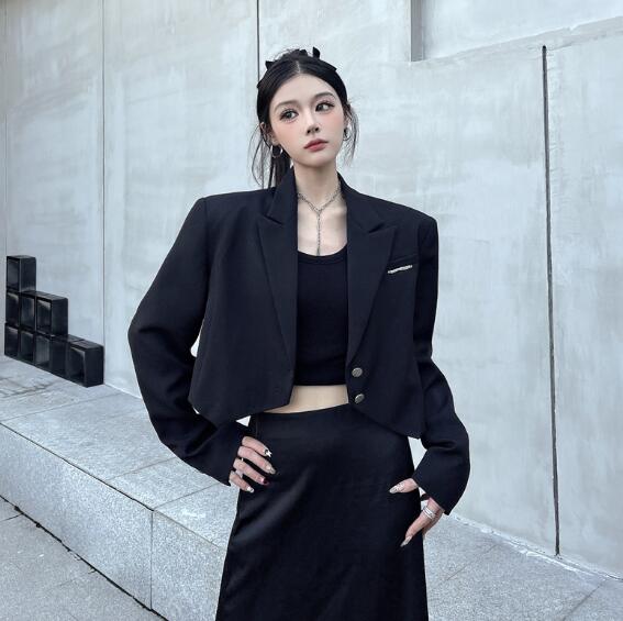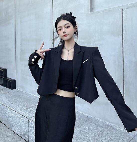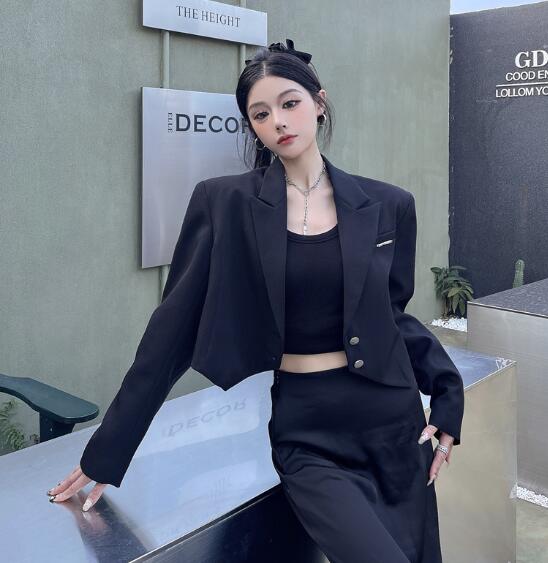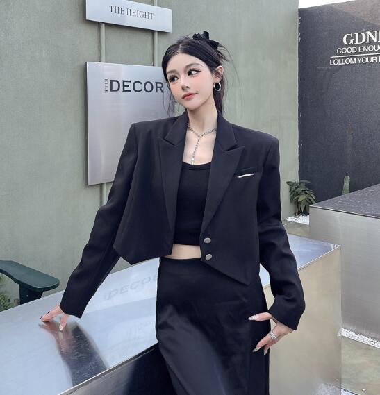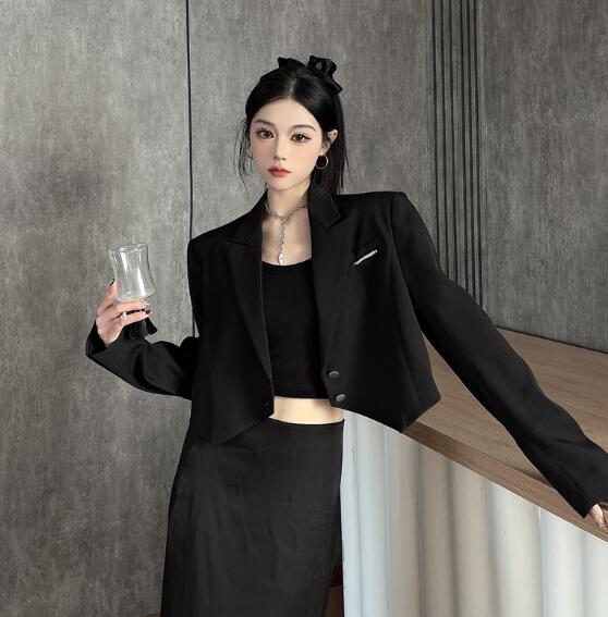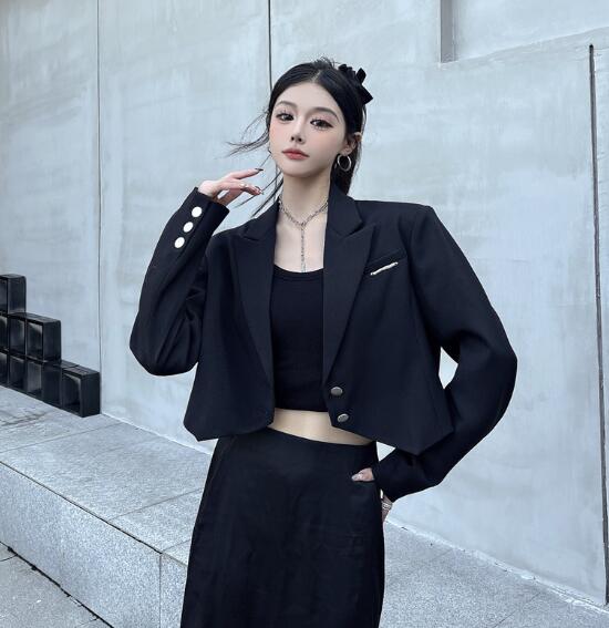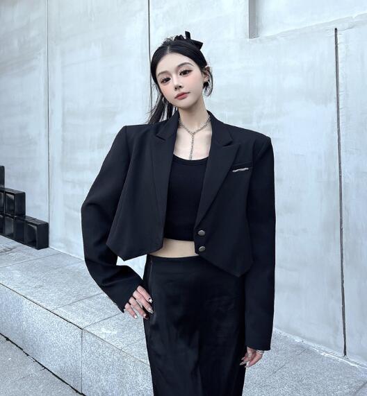 モード系 ショート丈長袖 ビッグシルエ コート ジャケット 豊富 S M L