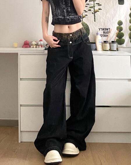 ヒョウ柄重ね着デニムジーパンパンツズボ レディースファッション 新登場! S M L XL