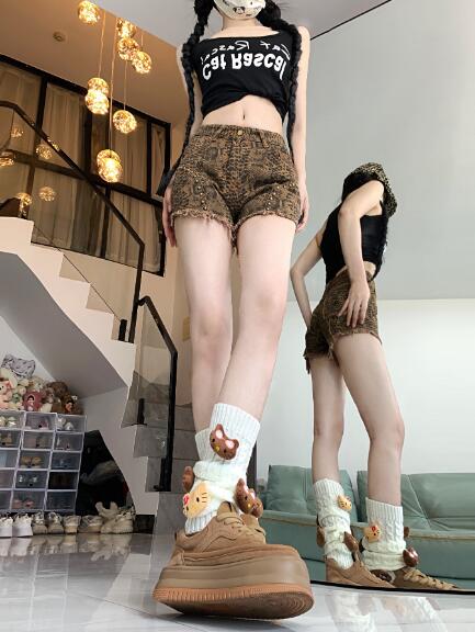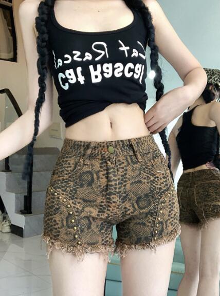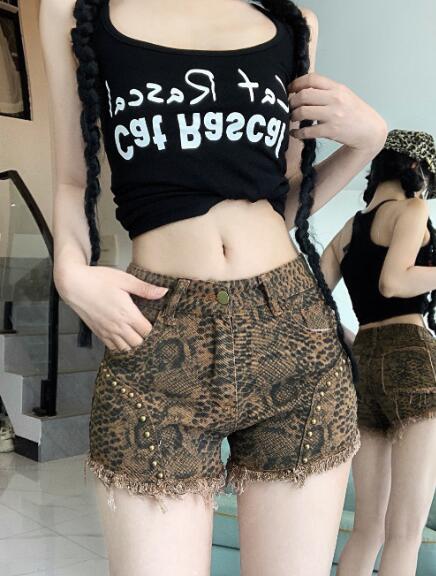 蛇柄スタッズデニムジーパンパンツズボンボトムスショートパンツショーパンダンス衣装 ダンス イベント文化祭 コスチューム 韓国ファッション HIPHOP レディースガールズ 個性的かっこい ヒップホップ