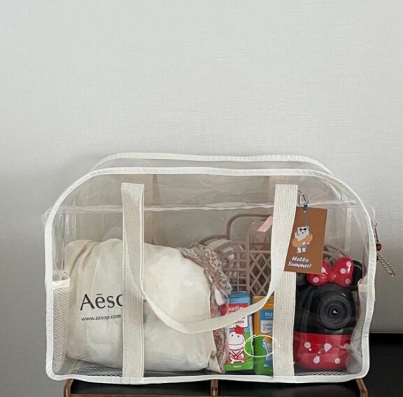 クリア透明プール海水泳バッグ鞄 大容量ジップ付きファスナー付きビニールビニールバッグスケルトン 着替えおもちゃ韓国