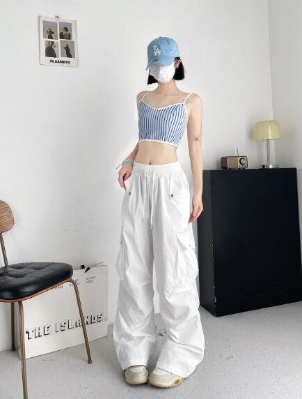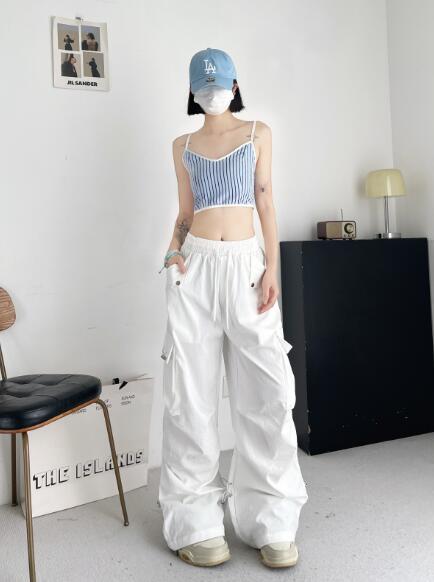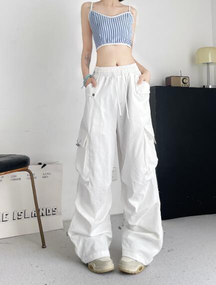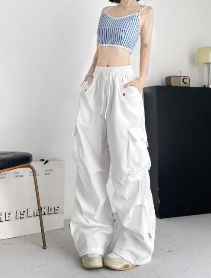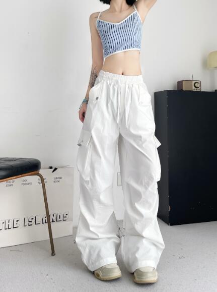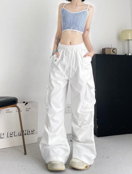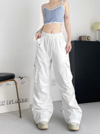 ♪S~L展開♪カーゴパンツパンツズボンボトムススウェット ロングワイド太い太め大きいサイズビッグゆったりハイウエストポケットダンス裾絞り衣装ヒップホップHIPHOPレディースガールズ個性的奇抜かっこい