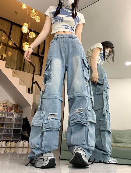 カーゴパンツジーパンパンツズボンボトムスダメージ破れ加工ダンス衣装 ダンス イベント文化祭 コスチューム 韓国ファッション HIPHOP レディースメンズガールズストリート 個性的 ヒップホップ