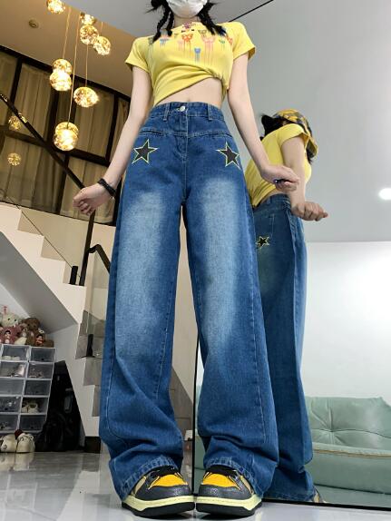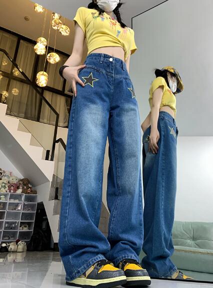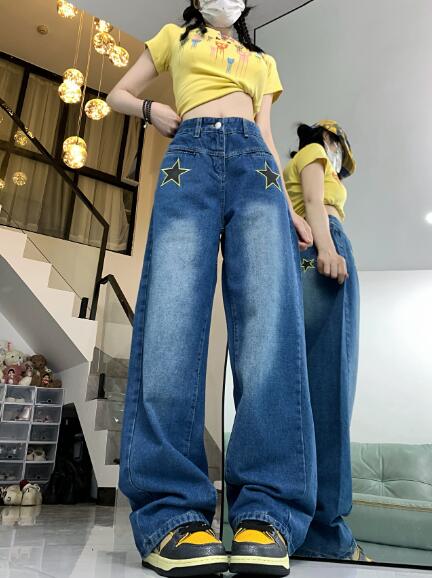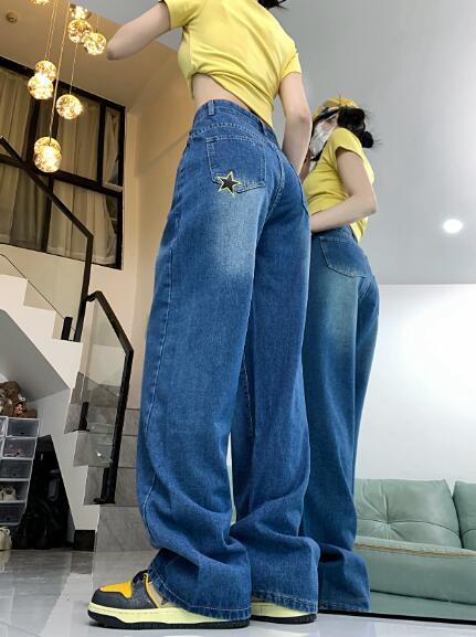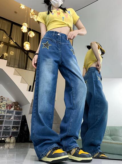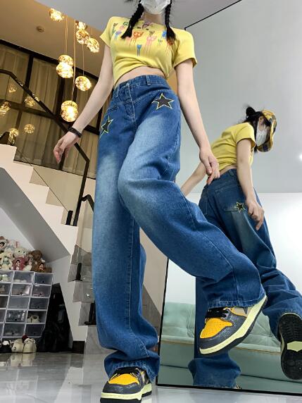 星柄ジーパンパンツズボンボトムスシンプルダンス衣装 ダンス イベント文化祭 コスチューム 韓国ファッション HIPHOP レディースガールズストリート 個性的 ヒップホップ