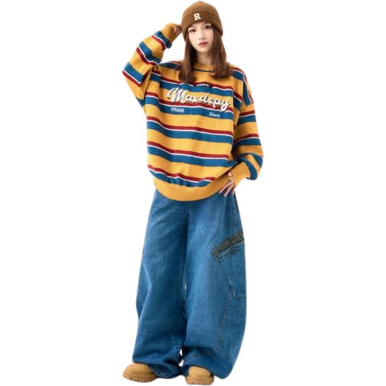 ヒョウ柄レオパードデニムズボンボトムスパンツジーンズジーパンストレートロングビッグポケットダンス衣装ヒップホップHIPHOPレディースメンズガールズストリート奇抜派手韓国ビッグ大きいサイズかっこいい