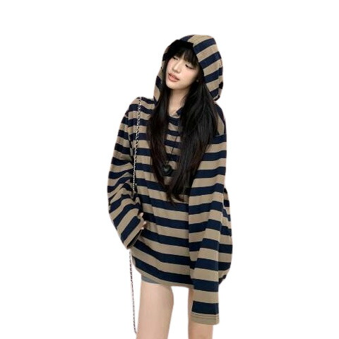 ボーダー柄フードフーディートレーナー パーカートップススウェットポケット長袖大きいサイズビッグゆったり長めダンス衣装ヒップホップHIPHOPレディースガールズストリート個性的韓国ファッション
