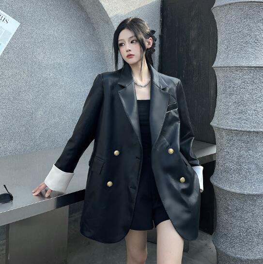 モード系 ジャケットアウター長袖ブラッ レディースファッション 豊富 S M L XL