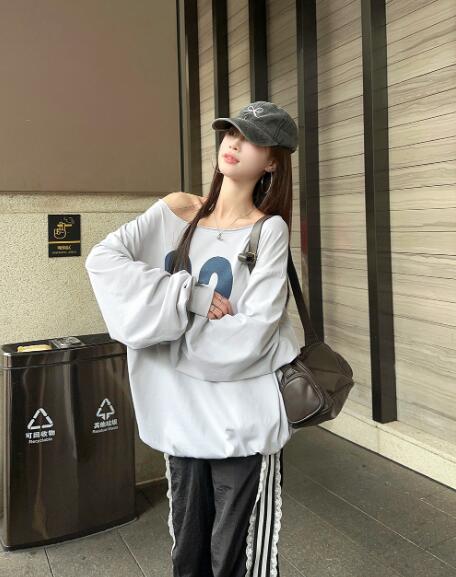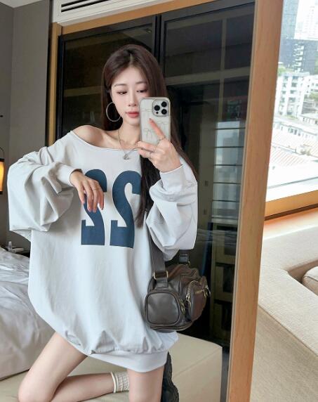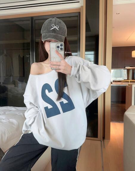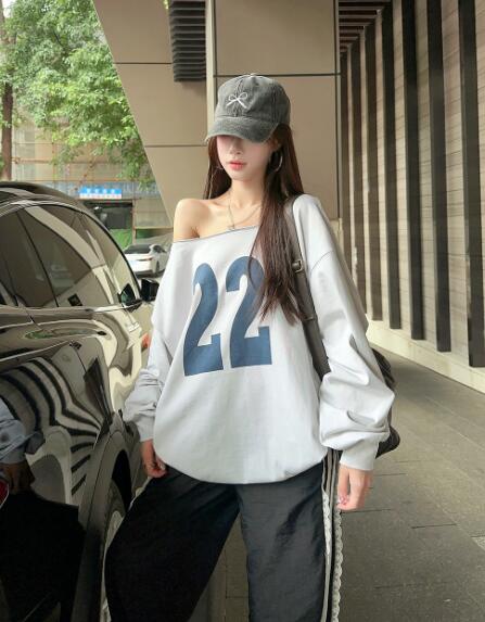 ロゴプリントナンバーオフショルダー長袖 トップス パーカー 続々入荷中