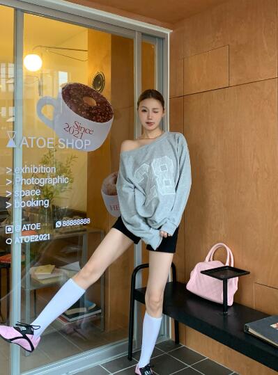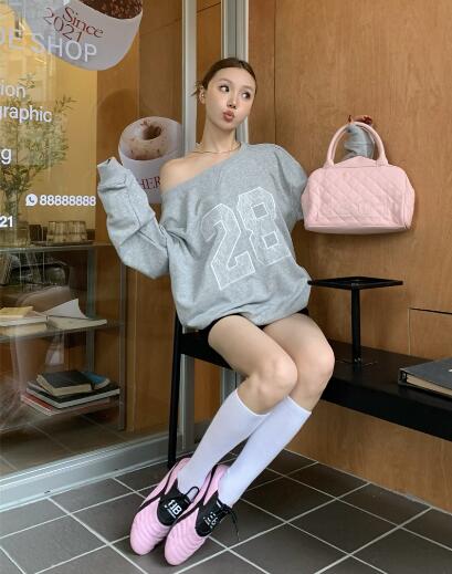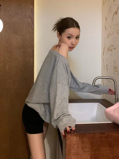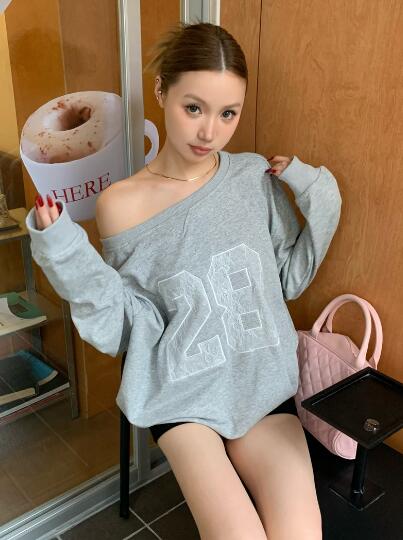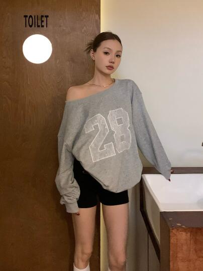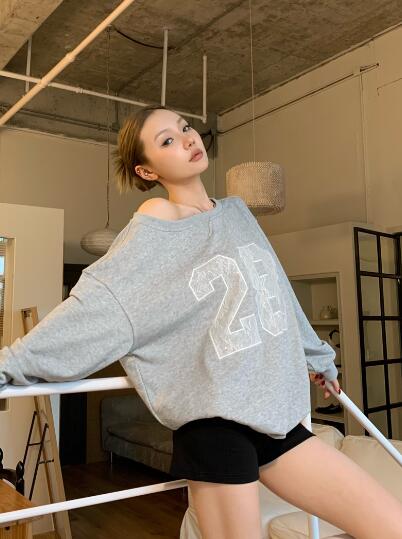 レースロゴ ナンバートップスカットソートレーナー長袖シンプルビッグ大きいサイズ長めゆったりグレーダンス衣装ヒップホップHIPHOPレディースガールズストリート韓国おしゃれ奇抜派手カジュアル