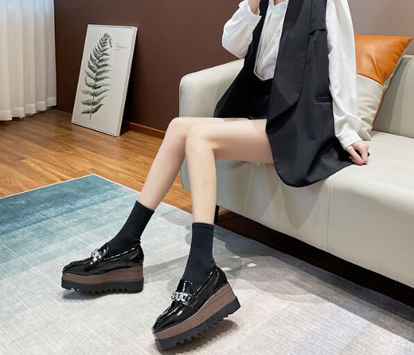 スリッポン ローファー モカシン 厚底 厚底靴 プラットフォーム ウエッジ 英国調 原宿系ファッション 韓国風ダンス 衣装 ヒップホップ HIPHOP 個性 奇抜 かわいい 美足 脚長 シュ 青文字系