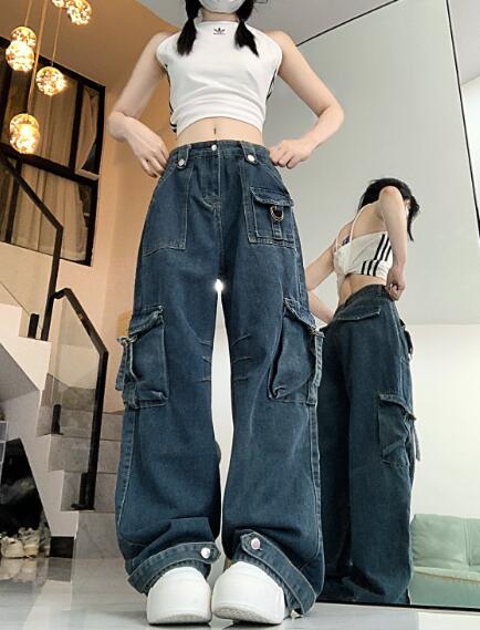 カーゴパンツデニムジーンズジーパンパンツズボンボトムスブルー青ダンス衣装 ダンス イベント文化祭 コスチューム 韓国ファッション HIPHOP レディースメンズガールズ 個性的奇抜派手韓 ヒップホップ