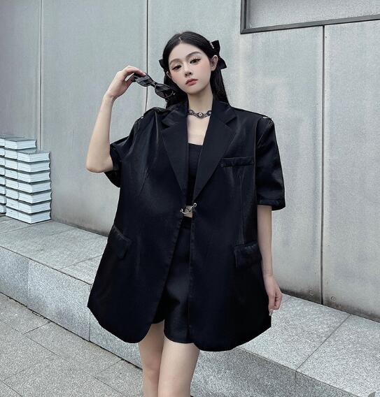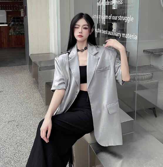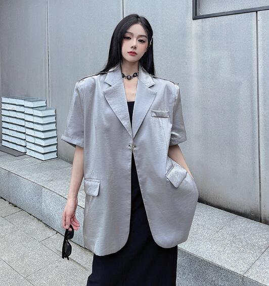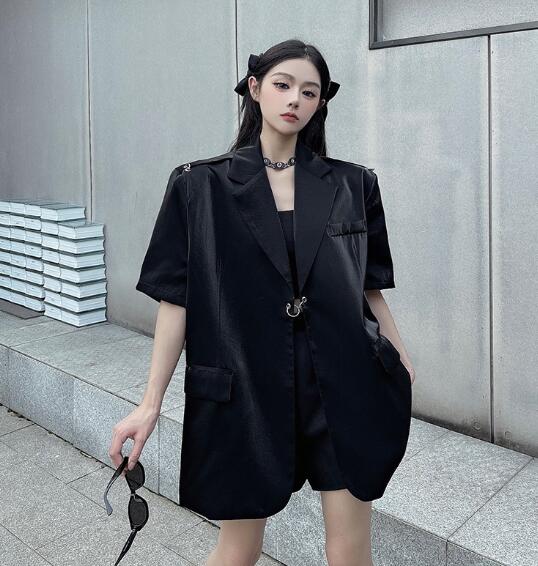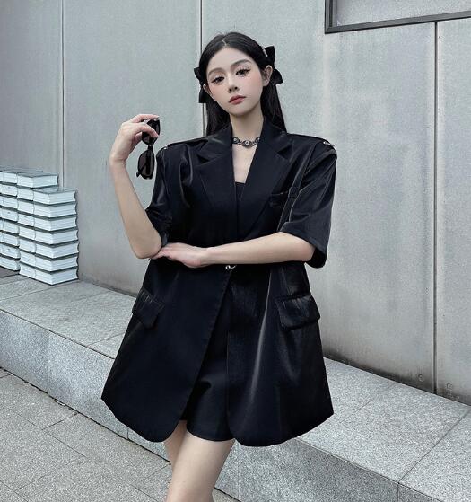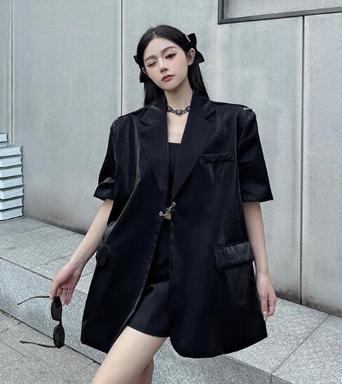 モード系 半袖 ビッグシルエット ゆめかわいい 奇抜 派手 ジャケット アウター ダンス 衣装 ヒップホップ コスチューム 韓国ファッション 大きいサイズ 服 原宿系オーバーサイズ レディース 個性的