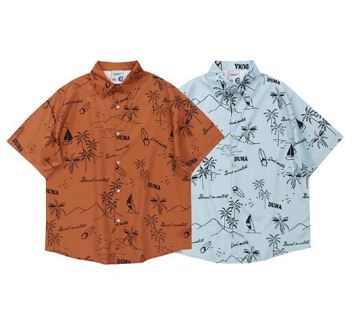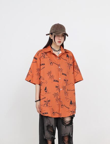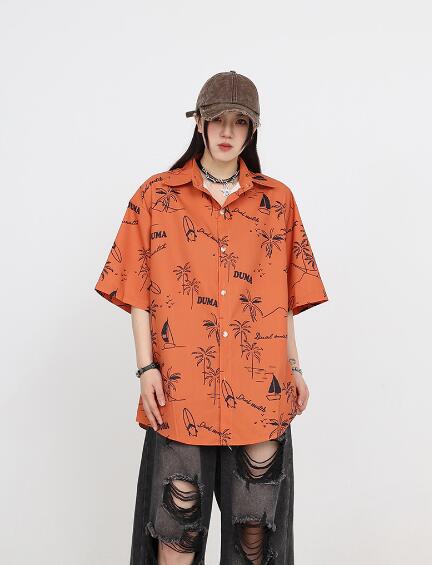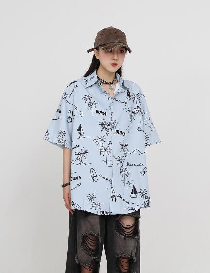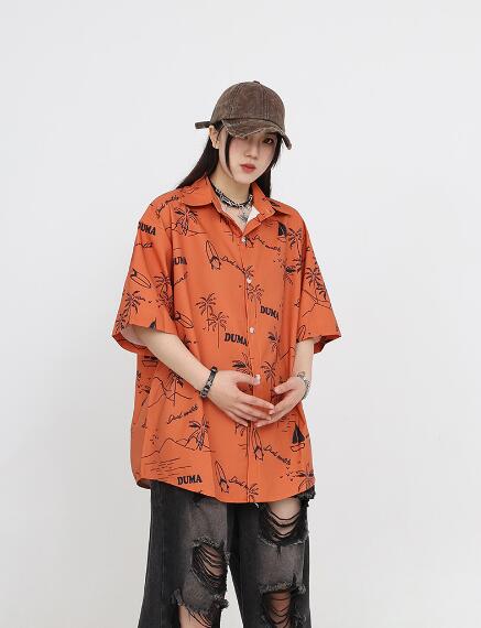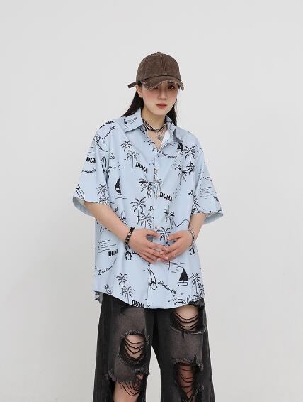 ♪M~XL展開♪総柄シャツブラウストップスカットソー半袖前開きゆったり大きいサイズダンス衣装ヒップホップHIPHOPレディースメンズガールズ大人韓国かわいい奇抜派手総柄柄シャツ韓国