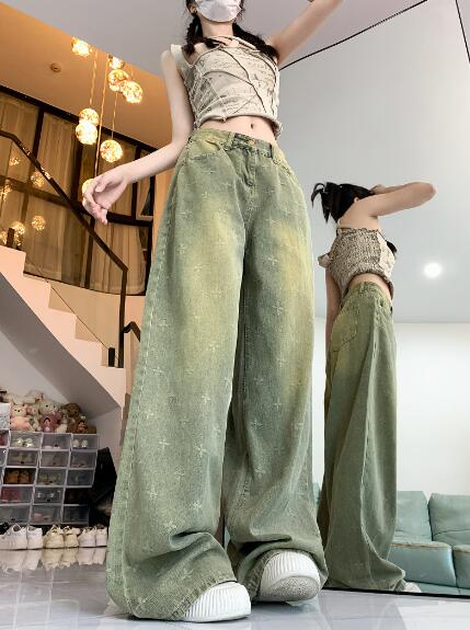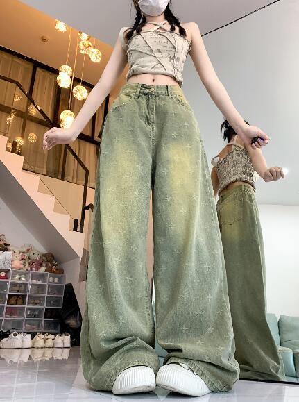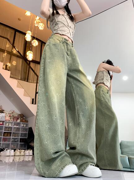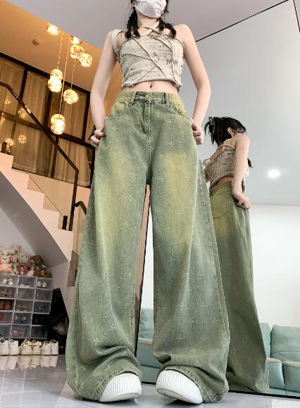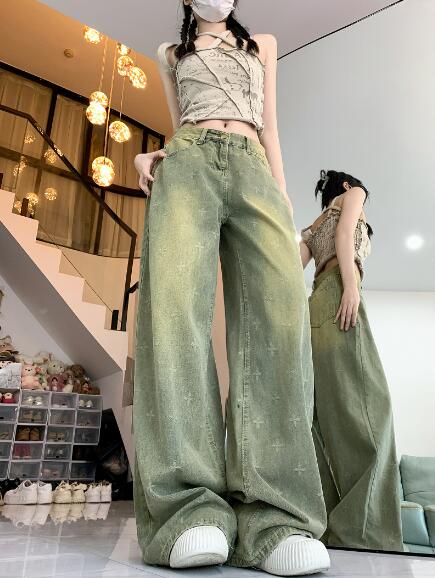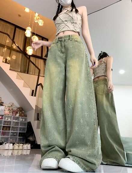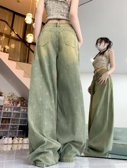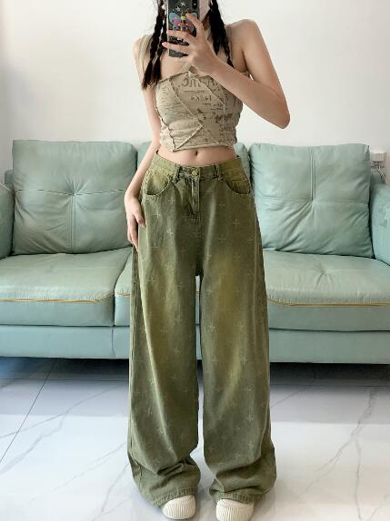 十字架デニムズボンボトムスパンツジーンズジーパンワイド太いシンプルダンス衣装ヒップホップHIPHOPレディースガールズストリート奇抜派手韓国ビッグ大きいサイズ