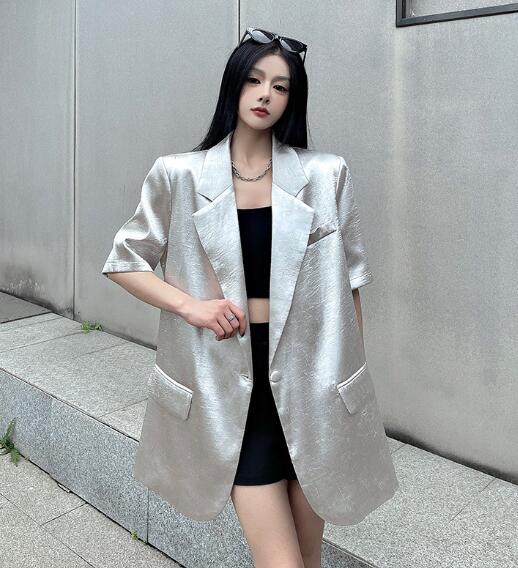 モード系 半袖 ビッグシルエット ゆめ コート ジャケット 豊富 ブラック シルバー S M L XL