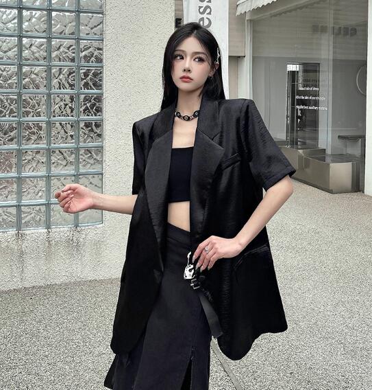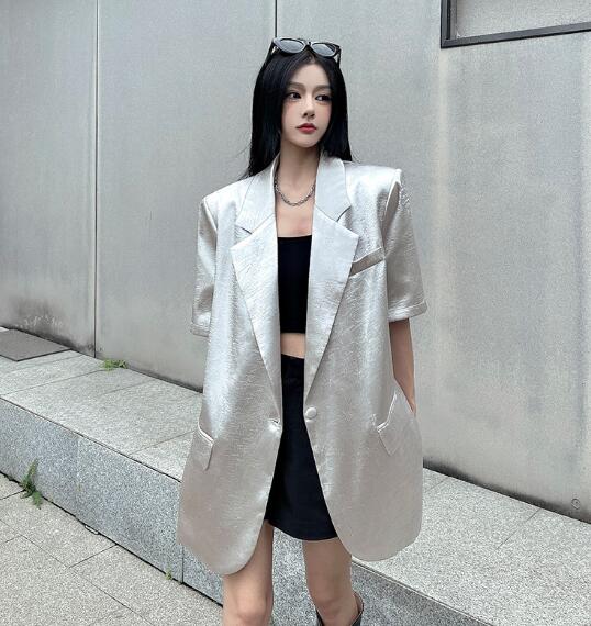 モード系 半袖 ビッグシルエット ゆめかわいい 奇抜 派手 ジャケット アウター ダンス 衣装 ヒップホップ コスチューム 韓国ファッション 大きいサイズ 服 原宿系オーバーサイズ レディース 個性的