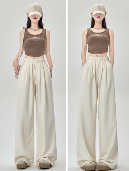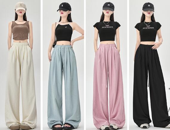 ♪S~XL展開 ♪ズボンボトムスパンツブラック黒アイボリーブルーピンクゆったりシンプルハイウエストレディースガールズストリート大人薄手 涼感