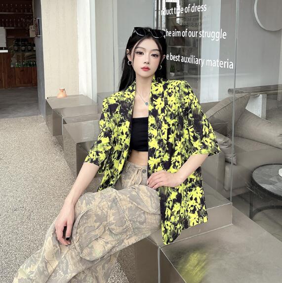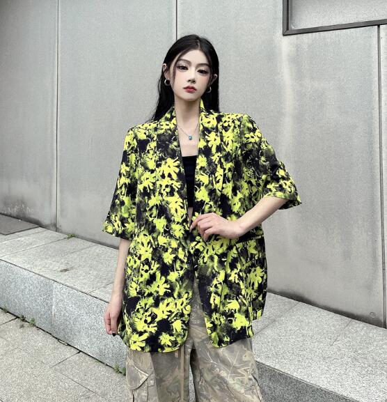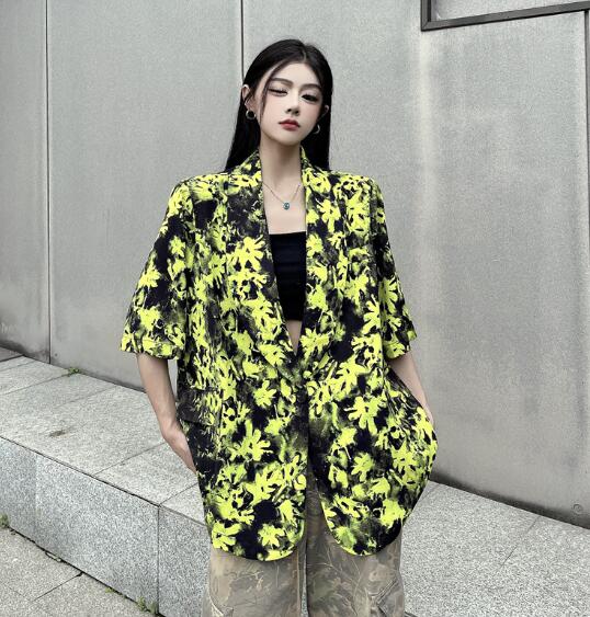 モード系 総柄半袖 ビッグシルエット ゆめかわいい 奇抜 派手 ジャケット アウター ダンス 衣装 ヒップホップ コスチューム 韓国ファッション 大きいサイズ 服 原宿系オーバーサイズ レディ 個性的
