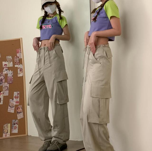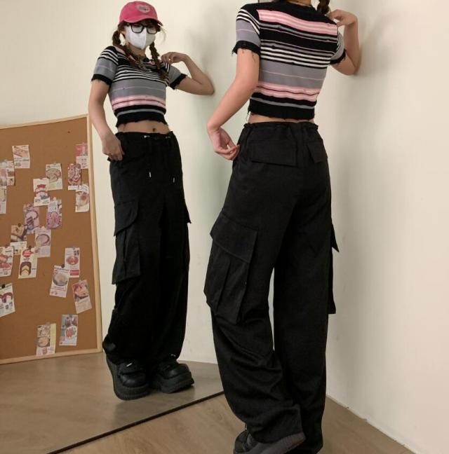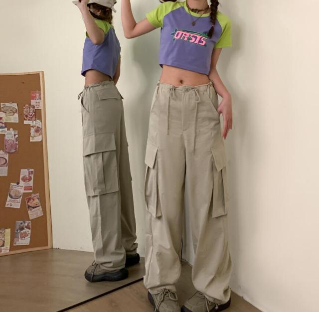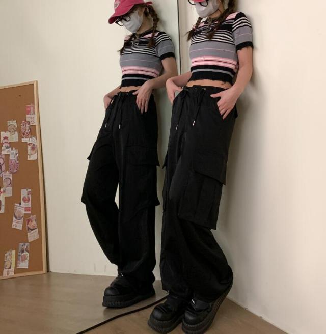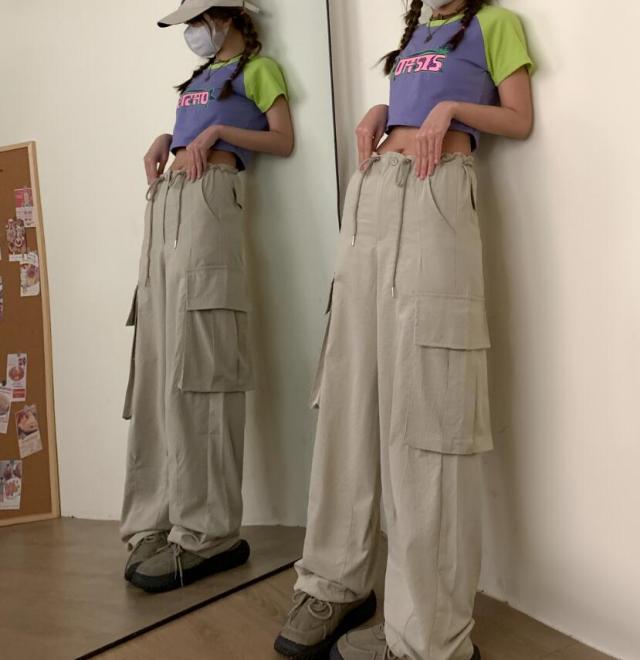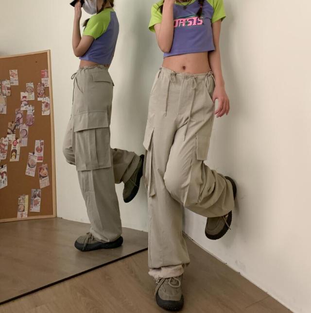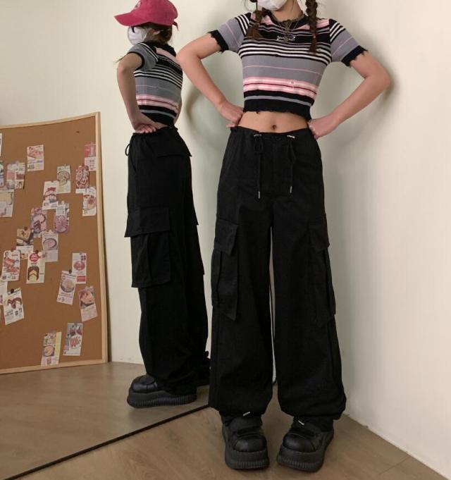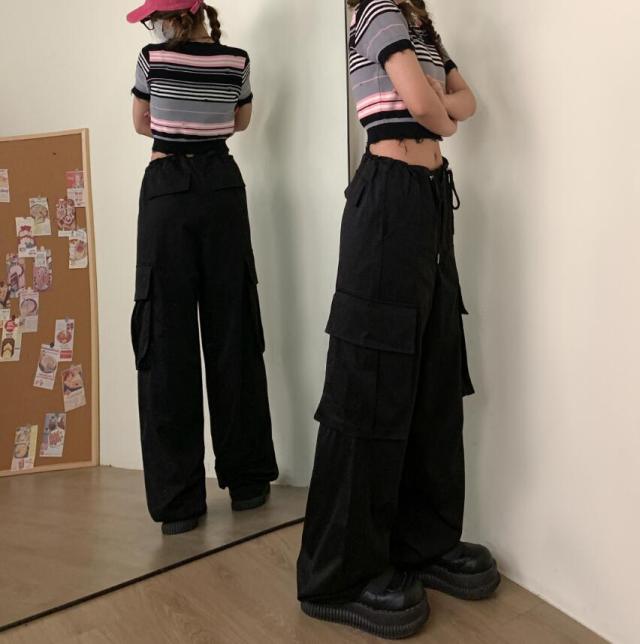 カーゴパンツズボンボトムスパンツゴムロングワイド太い太め大きいサイズビッグゆったりシンプルポケット絞りジョガーパンツジャージダンス衣装ヒップホップHIPHOPレディースガールズ 衣装 ダンス