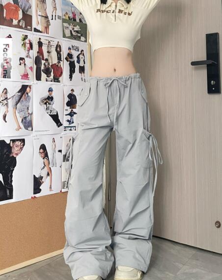 リボンレースアップ編み上げカーゴパンツパンツズボンボトムス ダンス衣装 ダンス イベント文化祭 コスチューム 韓国ファッション HIPHOP レディース ガールズストリート 個性的奇抜か ヒップホップ