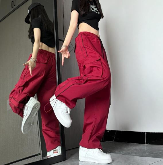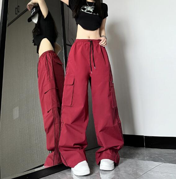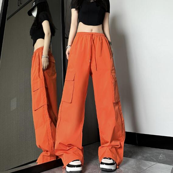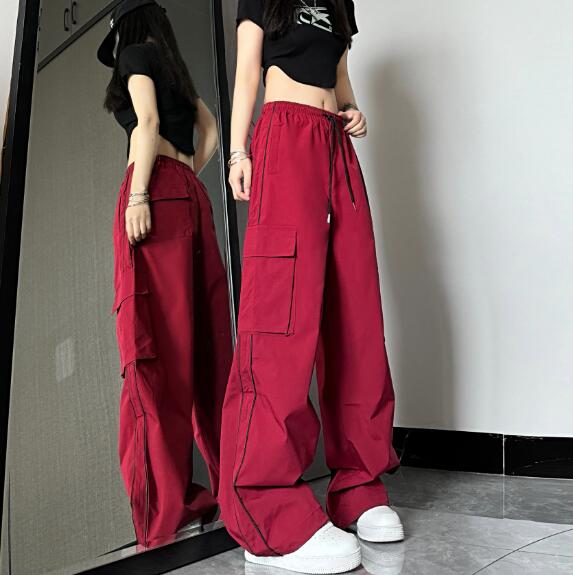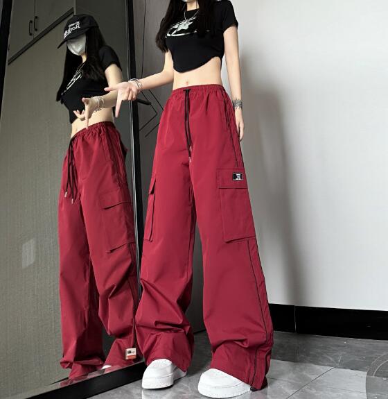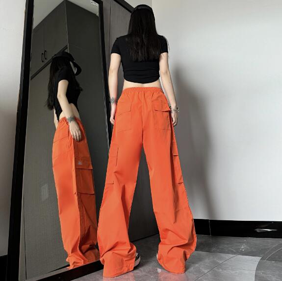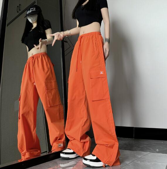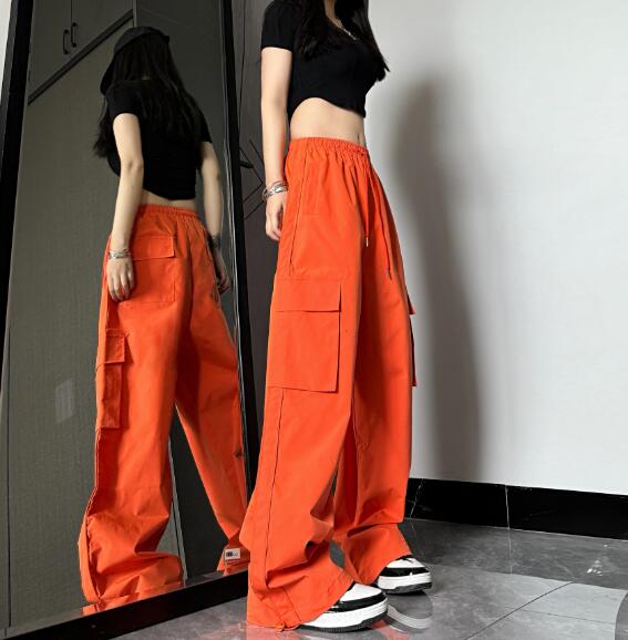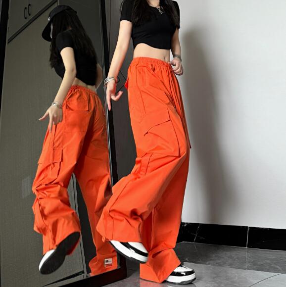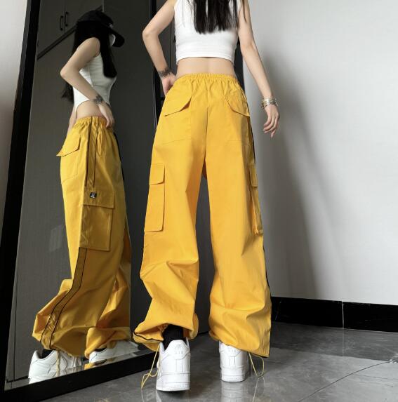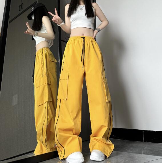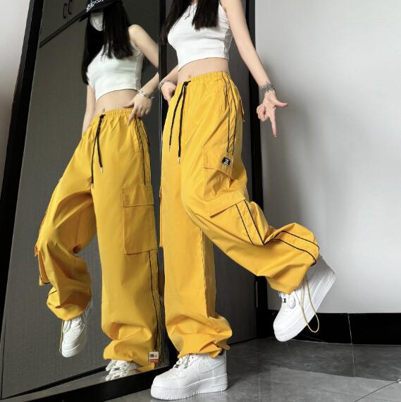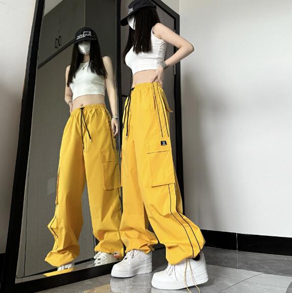 ワイドカーゴパンツズボンボトムスパンツハイウエスト絞りロングジョガーパンツ無地シンプル大きいサイズゆったりだぼだぼダンス衣装ヒップホップHIPHOPレディースストリート奇抜派手
