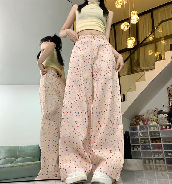 水玉カラフルパンツズボンボトムススウェ レディースファッション 超目玉商品 S M L XL