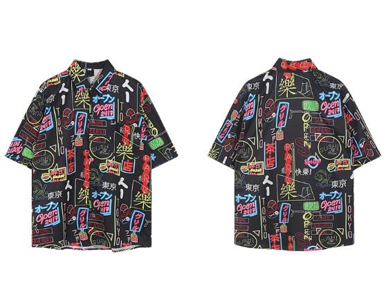 総柄 カラフル ゆったりオーバーサイズ半袖 シャツ ブラウストップスカットソーヒップホップHIPHOP原宿系 ファッション レディース メンズガールズ ライブ衣装 個性的 派手カワ 部活 病みかわいい