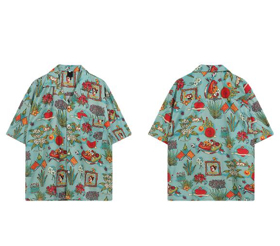 総柄 カラフル ゆったりオーバーサイズ半袖 シャツ ブラウストップスカットソーヒップホップHIPHOP原宿系 ファッション レディース メンズガールズ ライブ衣装 個性的 派手カワ 部活 病みかわいい