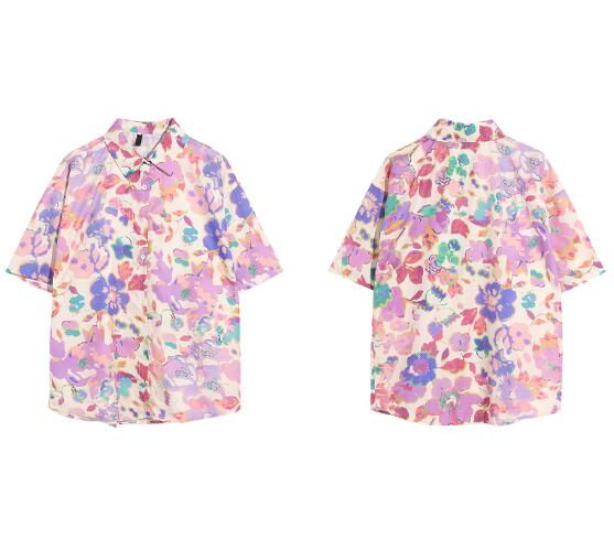 総柄 カラフル ゆったりオーバーサイズ半袖 シャツ ブラウストップスカットソーヒップホップHIPHOP原宿系 ファッション レディース メンズガールズ ライブ衣装 個性的 派手カワ 部活 病みかわいい