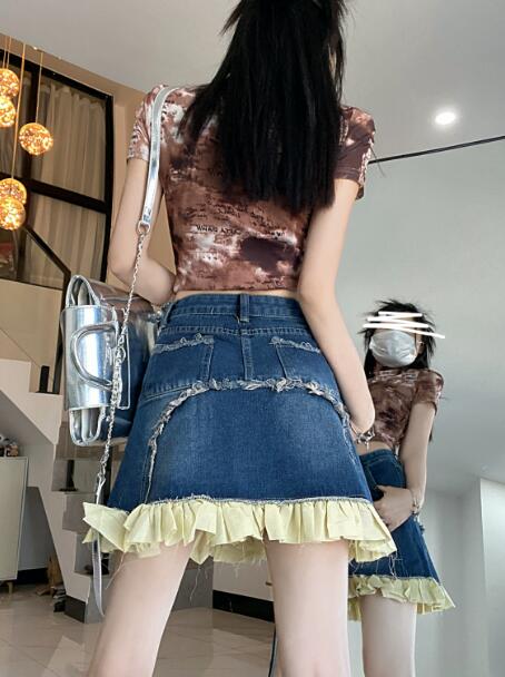 スカート スカパンデニム ブルー青シンプルハイウエストミニスカミニ膝上ひざ丈ボトムスダンス衣装ヒップホップHIPHOPレディースガールズkpop韓国ストリート 文化祭イベント個性的奇抜派手