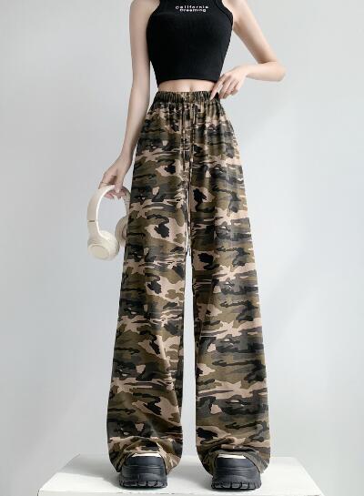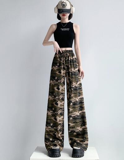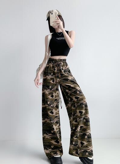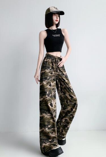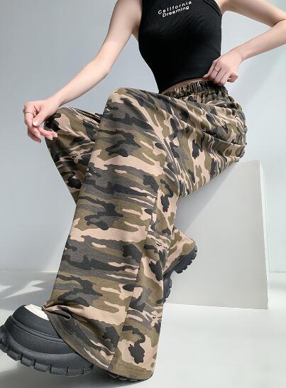 迷彩ミリタリーズボンボトムスパンツストレートロングハイウエストダンス衣装ヒップホップHIPHOPレディースガールズストリート奇抜派手韓国ビッグ大きいサイズイベント部活団体