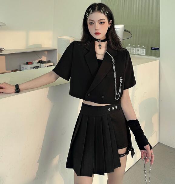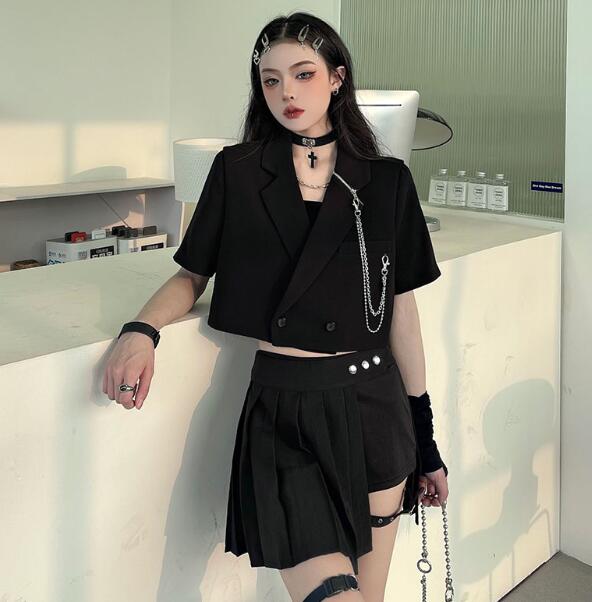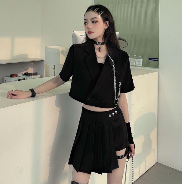 モード系チェーン半袖 ビッグシルエット ゆめかわいい 奇抜 派手 ジャケット アウター ダンス 衣装 ヒップホップ コスチューム 韓国ファッション 大きいサイズ 服 原宿系オーバーサイズ レデ 個性的