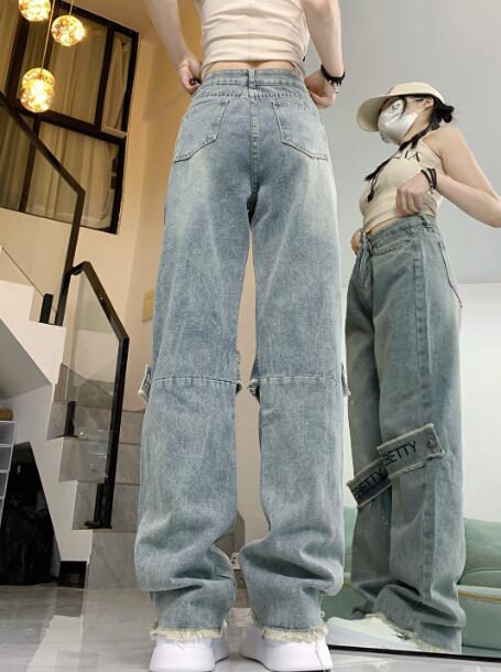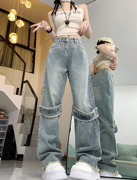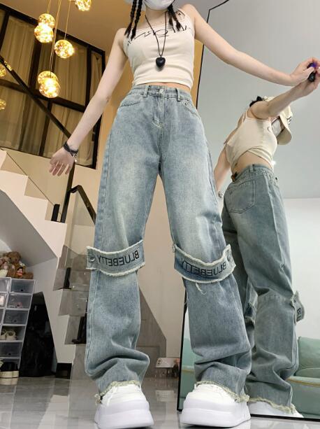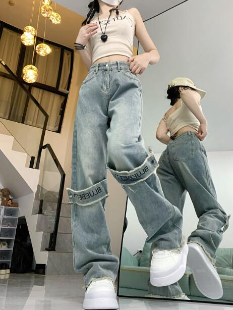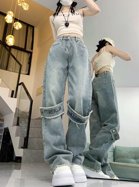 ベルトデニムズボンボトムスパンツジーンズジーパンシンプルダンス衣装ヒップホップHIPHOPレディースガールズメンズストリート奇抜派手韓国ビッグ大きいサイズ