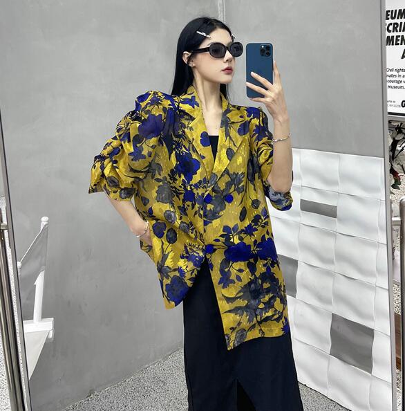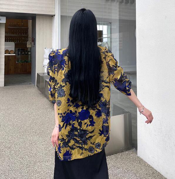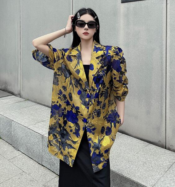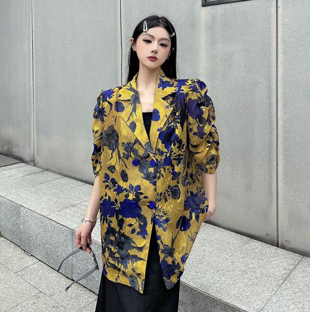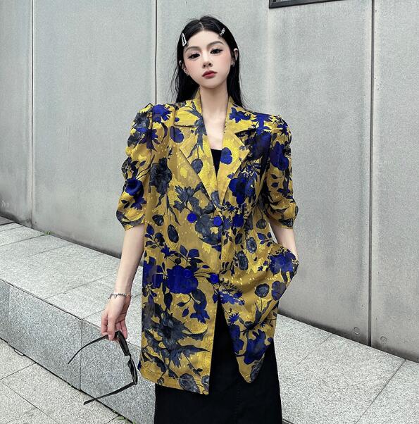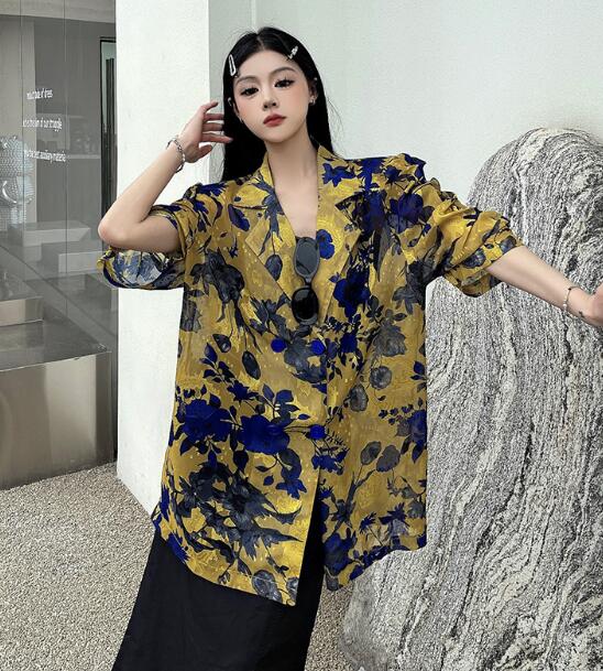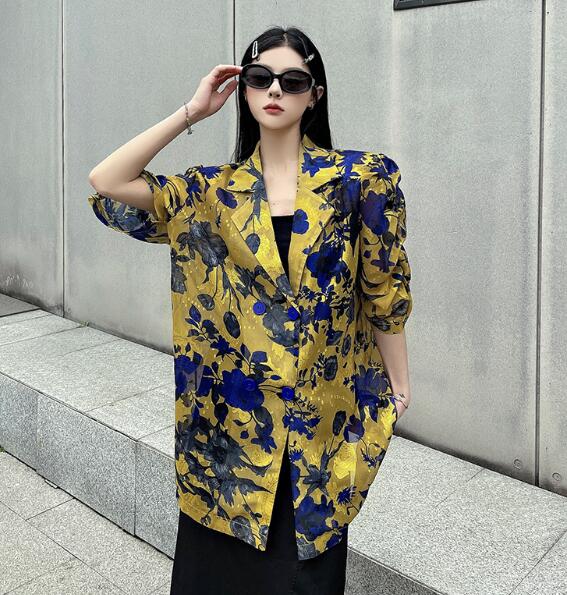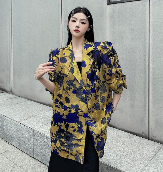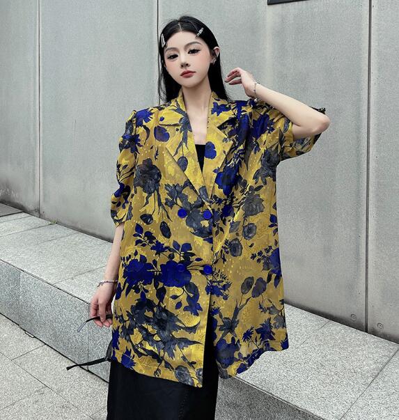 モード系総柄半袖 ビッグシルエット ゆめかわいい 奇抜 派手 ジャケット アウター ダンス 衣装 ヒップホップ コスチューム 韓国ファッション 大きいサイズ 服 原宿系オーバーサイズ レディー 個性的