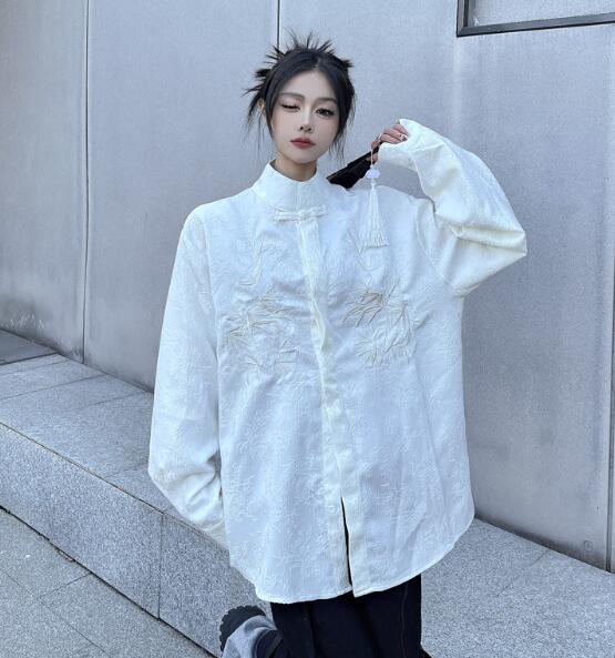 チャイナ風チャイナボタンチャイナ服長袖トップスシャツブラウス ビッグシルエット ゆめかわいい 奇抜 派手 ダンス 衣装 ヒップホップ コスチューム 大きいサイズ 服 原宿系オーバーサイズ レデ 個性的