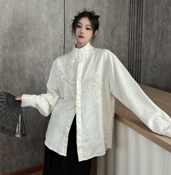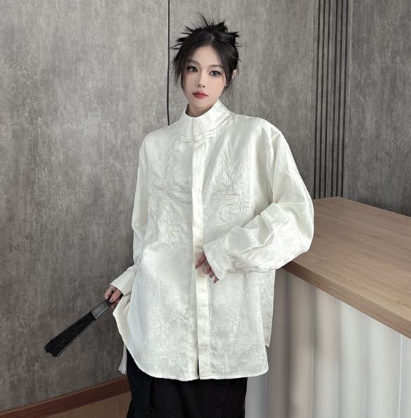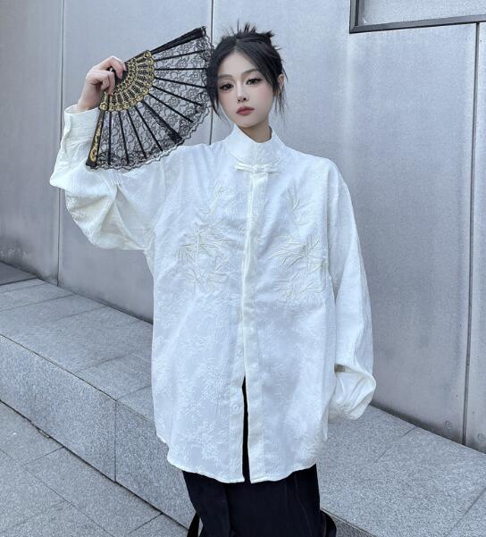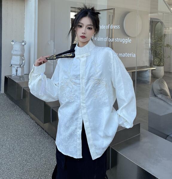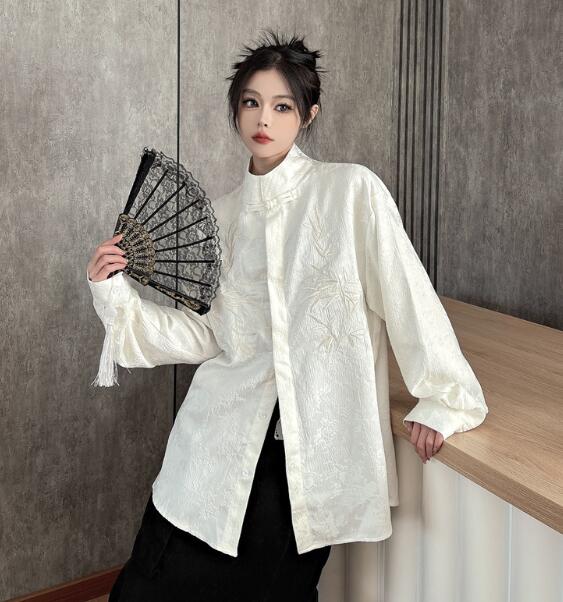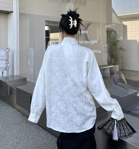 チャイナ風チャイナボタンチャイナ服長袖 トップス シャツ ブラウス 続々登場 M L XL