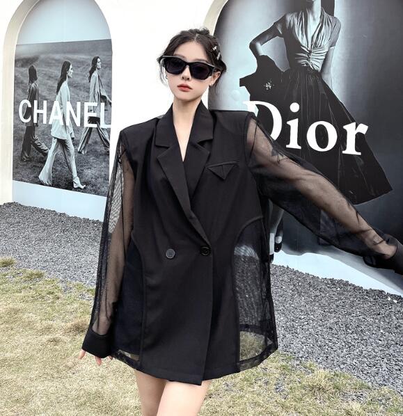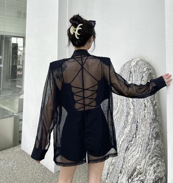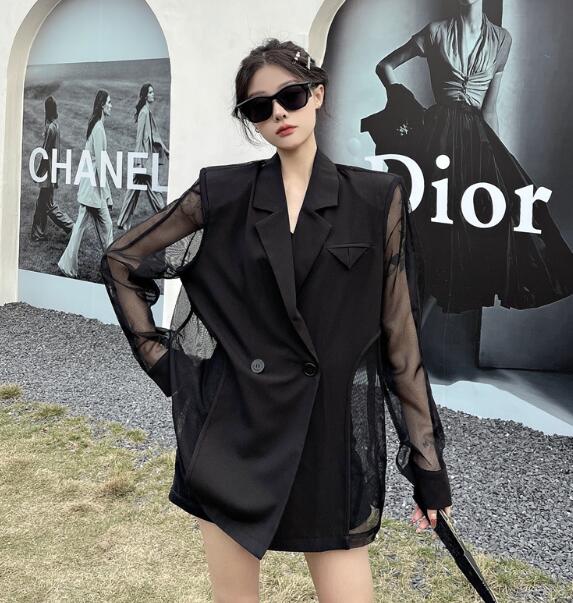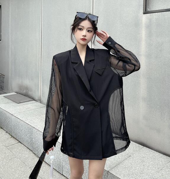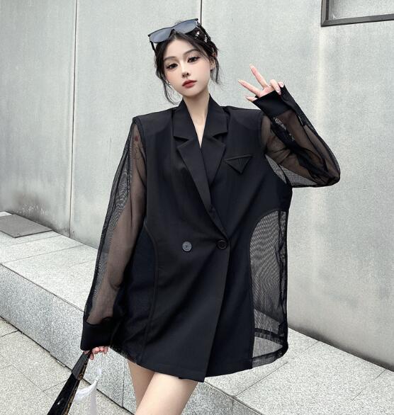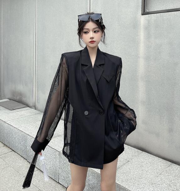 モード系長袖 透け感セクシー ビッグシルエット ゆめかわいい 奇抜 派手 ジャケット アウター ダンス 衣装 ヒップホップ コスチューム 韓国ファッション 個性的 服 原宿系オーバーサイ 大きいサイズ