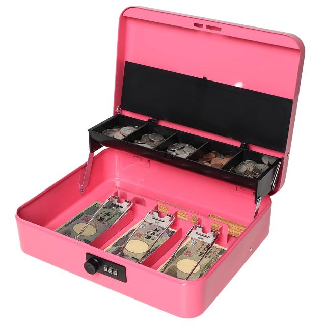◆商品名:Jssmst(ジェスマット) 手提金庫 ダイヤル式 会計用コインケース 3つスプリングクリップ 紙幣整理 金属製 30x24x8.8cm (ピンク ダイヤル