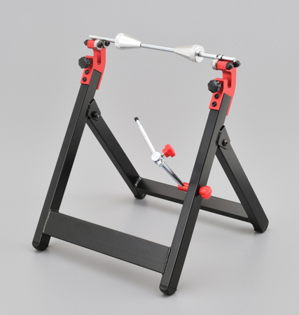 (折りたたみ式スタンド)。ホイールのバランサー調整時のシャフト脱落防止クリップ付き。