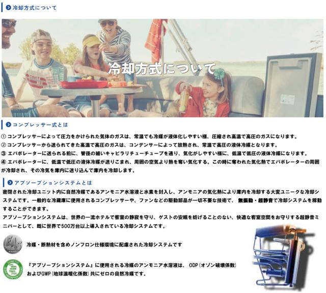 ■ 冷却方式はアブソープションシステムです。
