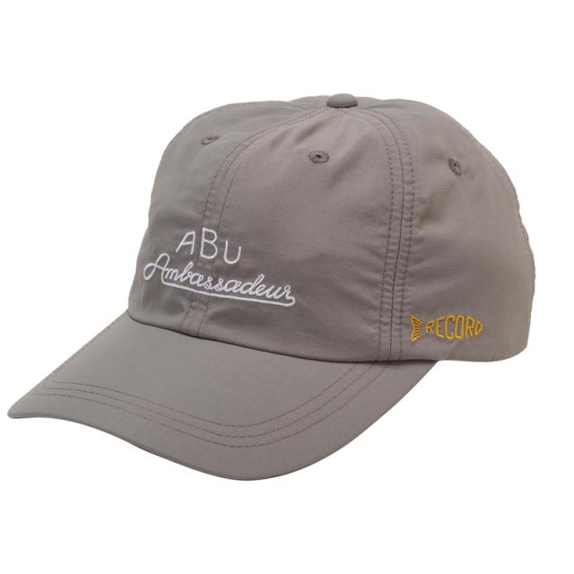 フロントにAbu Ambassadeurの平刺繍、側面にRecord柄のワンポイント刺繍を施した、六枚ハギのベースボールキャップ