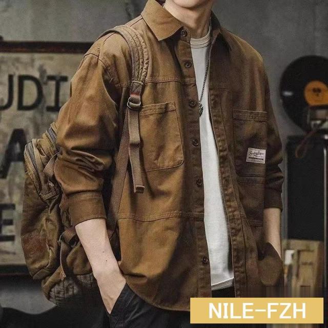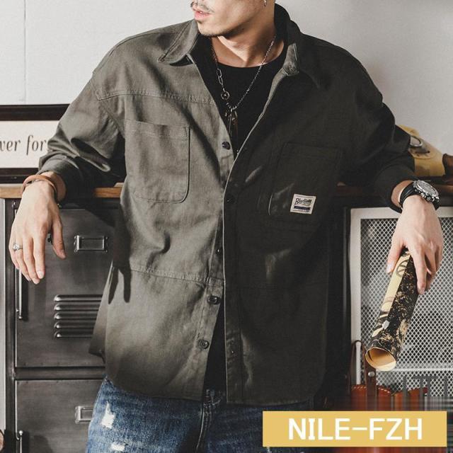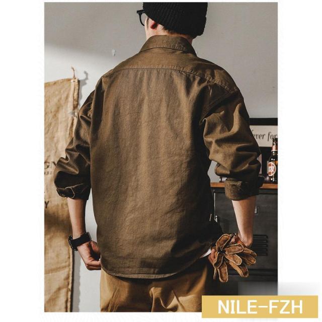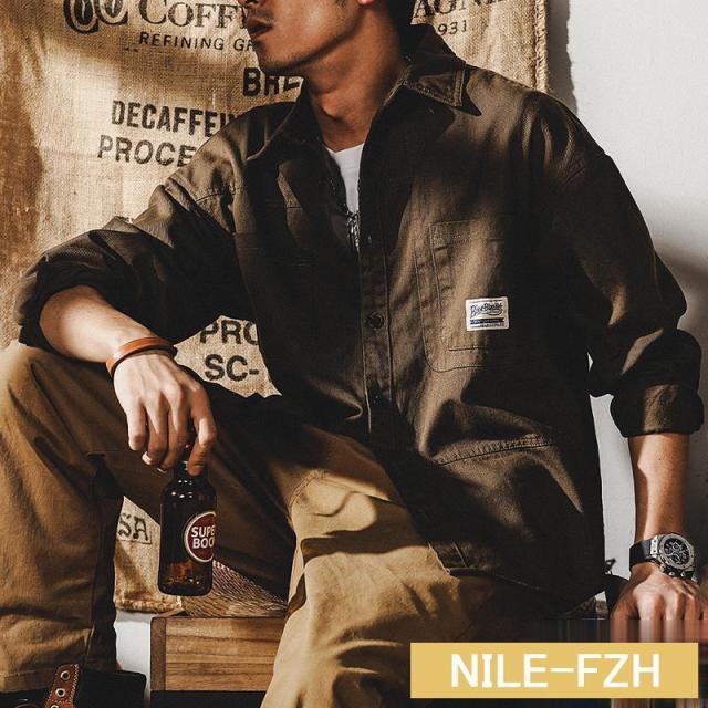 ミリタリー メンズ ワークシャツ 長袖 白シャツ アメカジ ライト カジュアル ストリート オシャレ コットン メンズファッション