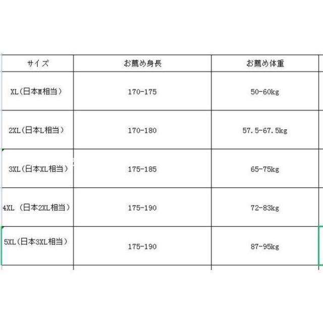 【サイズ】XL(日本M相当)、2XL(日本L相当) 3XL(日本XL相当) 4XL (日本2XL相当)5XL(日本3XL相当)