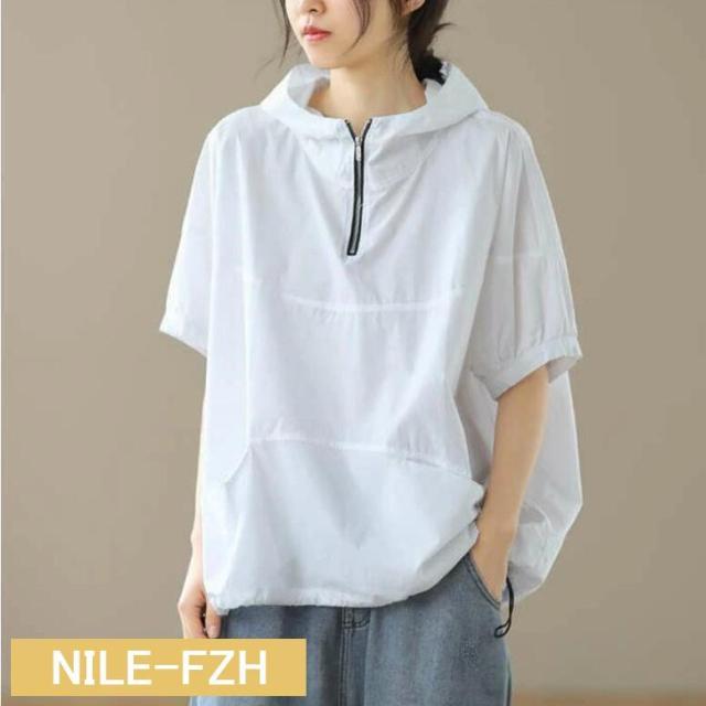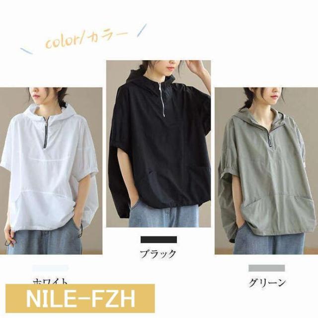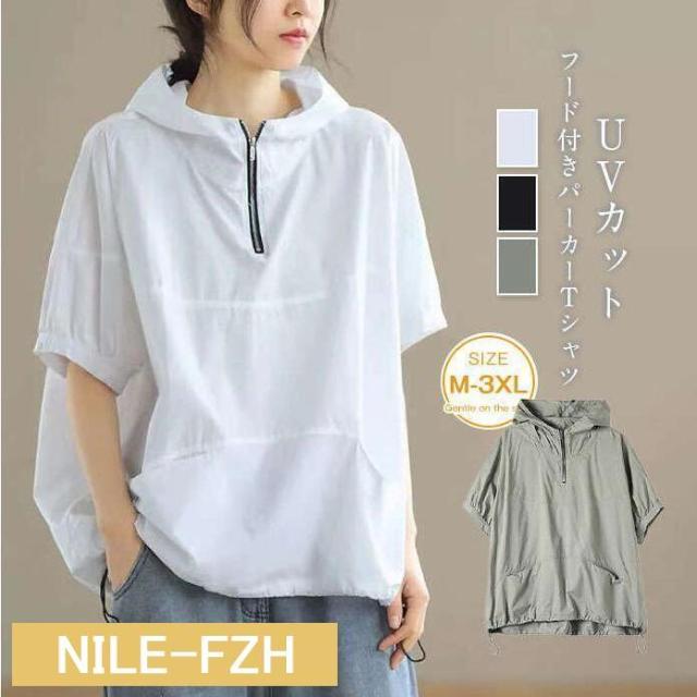 UVカットパーカー レディース 半袖 Tシャツ 夏 ゆったり ビッグシルエット トレーナー おしゃれ フード付き プルオーバー 大きいサイズ 体型カバー