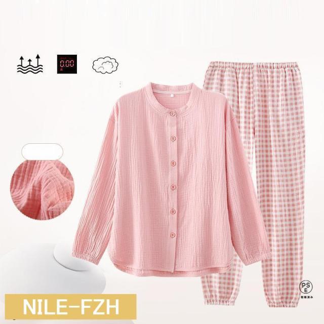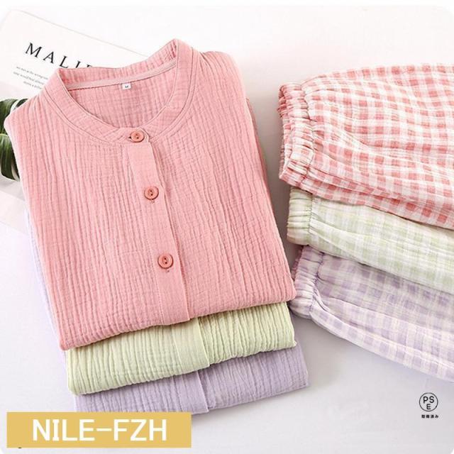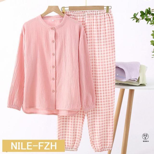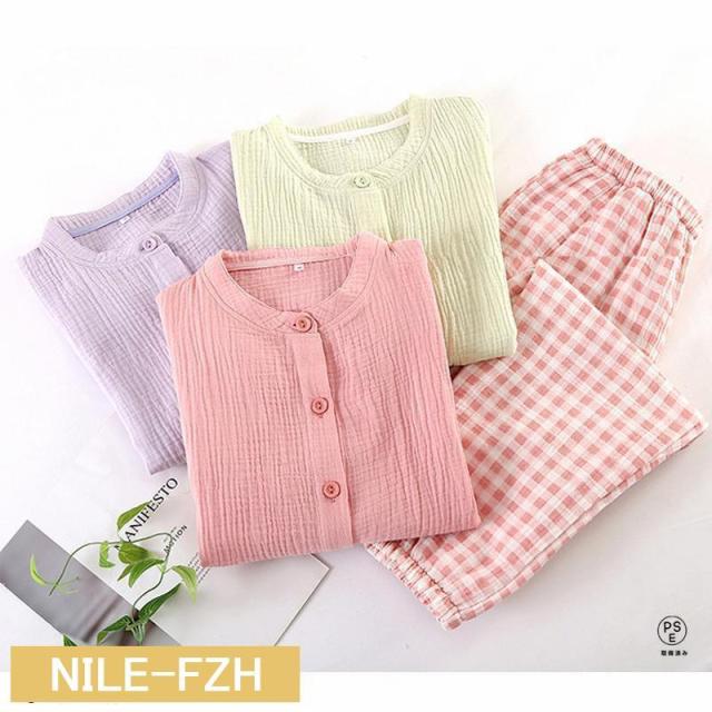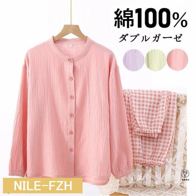 ルームウェア パジャマ レディース 二重ガーゼ 綿100% 前開き 長袖 半袖 長ズボン 春 夏 秋 ダブルガーゼ ガーゼパジャマ シニア 冷え性対策