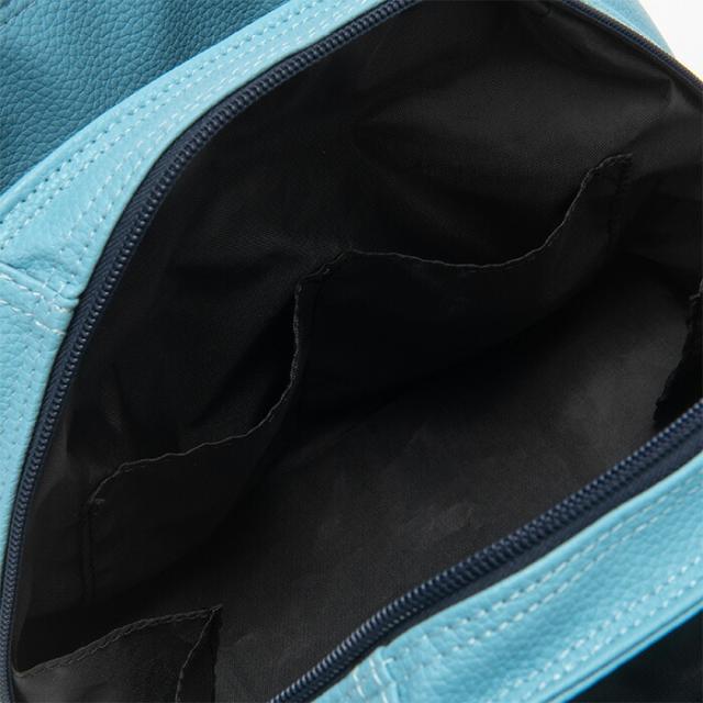 フラッグロゴシリーズのラウンドバッグ。高級感のあるシボ合皮を多色使いで組み合わせたデザインが特徴。前後面には出し入れしやすい2箇所の大きなポケット。メイン収納箇所も大きく開口する仕様。内装はポケット付き。