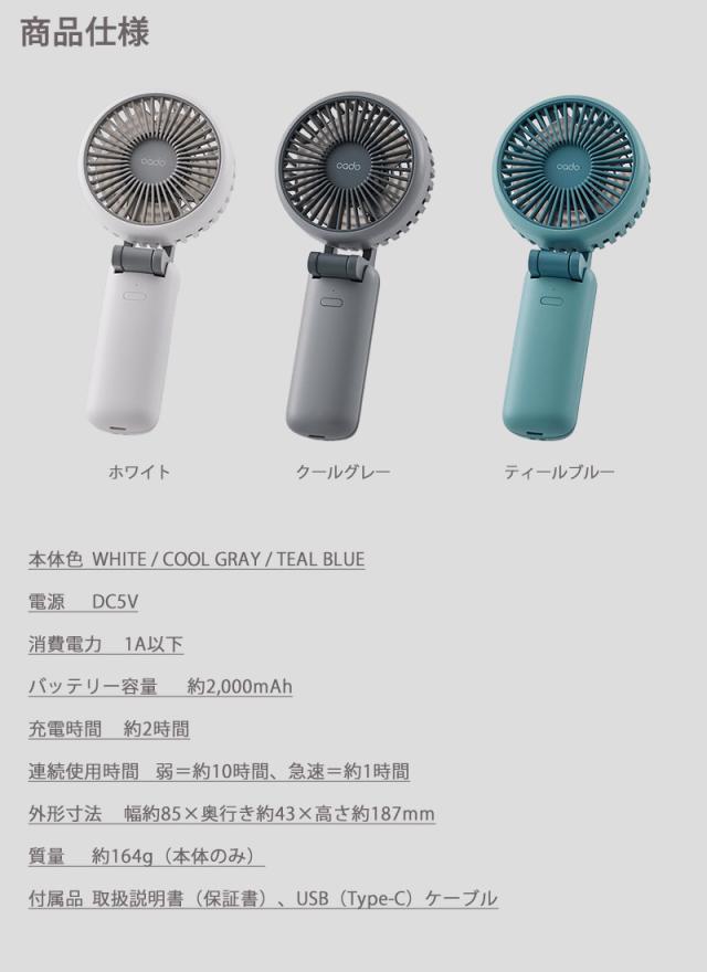 cado カドー 携帯扇風機 ハンディ扇風機 携帯ファン おしゃれ ミニ扇風機 手持ち 首かけ 卓上 折り畳み 軽量 通勤 通学 高速充電対応 大容量バッテリー USB充電式 ストラップ