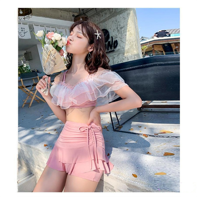 水着 レディース ビキニ 体型カバー 韓国 ショートパンツ付き レース 大人ママ水着 かわいい 可愛い 盛れる おしゃれ カバーアップ 温泉 プール セパレート 露 送料無料