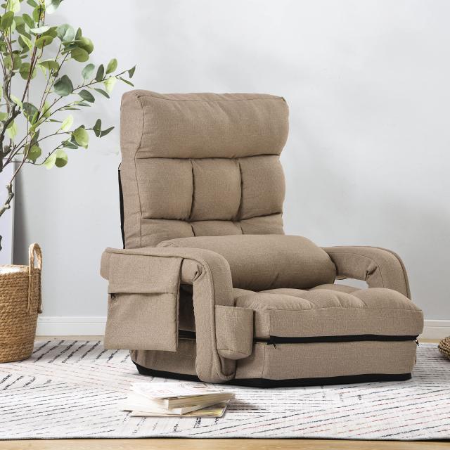 アピール情報: 【4wayで使える座椅子】シーンや体勢に合わせて座椅子の形を変えられます。 【安心の日本製ギア、14段階調節可能】背もたれ部分にKoYo製の14段階ギアを採用します。 【肘掛け付きでより快適】肘掛けにクッションがたっぷり。 【小物収納設計】片側に収納袋とカップバッグが付きます。 【ファブリック生地】ファブリック素材を使用していて一年中快適に使えます。 【高品質な座り心地】厚さ約20cmの座面で、体圧をバランスよく分散させることで体にフィットできます。 【移動楽々】女一人でも簡単に運べます。 【折りたたむと、よりコンパクトに】折りたたむとコンパクトにまとめられます。 【クッション×1付き】本体と同色のクッションが付属します。