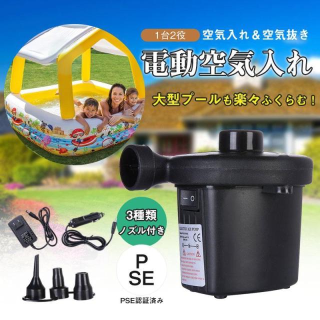 空気入れ 空気抜き プール 家庭用プール ビニールプール 電動 大型 子供 ポンプ エアー コンプレッサー 電動エアーポンプ 3種類ノズル付き